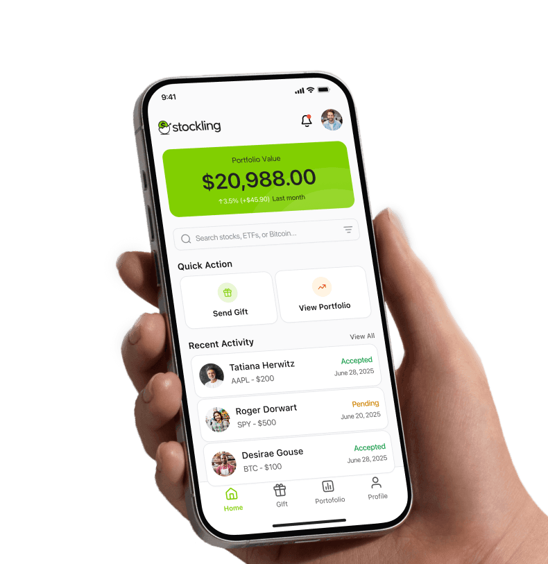 Winbold does not offer IRA, 401(k), or other retirement accounts. Contributions and gifts made through the Stockling platform are not intended to fulfill retirement or tax-advantaged investing purposes.U.S. Residents Only